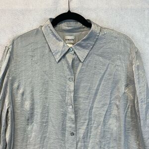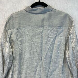 CHICO'S Shirt Women’s Size 3 Silver Shimmer Long Sleeve Button Down Blouse Top X