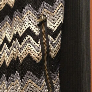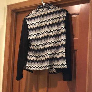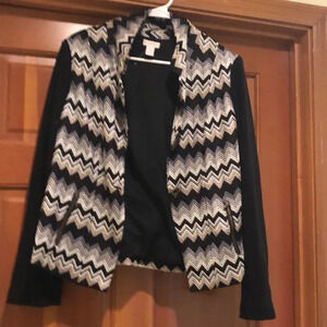 Chico’s zig zag pattern jacket. You can wear the jacket open or button it with one button