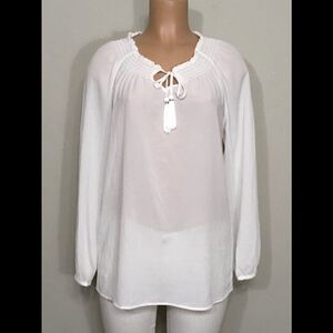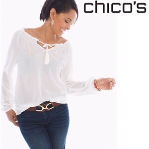 CHICO’S tassel peasant top. NWOT