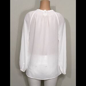 Lightweight semi sheer peasant top. Elastic smocking at neck. Ties have tassels. The tassels have a silver thread trim on them. Beautiful! Buttons on the sleeves. It is a Chico size one their conversion chart says that is a medium.