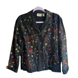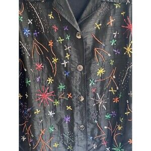 CHICOs DESIGN Size 1 100% Silk CELEBRATE FIREWORKS Beaded Jacket Sequins