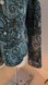 Stylish floral embroidered denim jacket with intricate black patterns. Perfect for adding a touch of elegance to any outfit. 4 pockets. Measures approximately 19 inches P2P