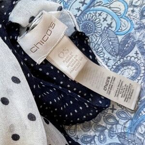 CHICO's Scarf Polka Dot Reverse Pattern Navy White Rayon Oblong 72" x 19"