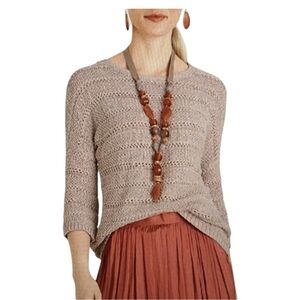 CHICO’s Shine Stitch Detail Pullover Sweater in Rose Pink/Cream in Size 2 (10)