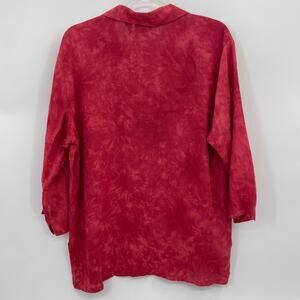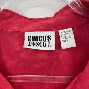 CHICO's Shirt Linen Acid Wash Women Sz 3 US XL Button Front Red 3/4 Sleeve