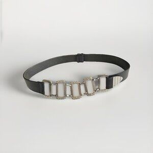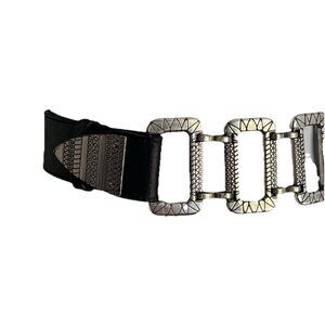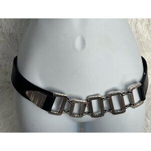 CHICOs Silver Metal Accents & Black Leather Belt - S/M Statement Piece Retro