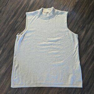 Beautiful sleeveless, mock turtleneck tunic sweater from CHICO's. Soft gold metallic. Fabric is super soft and a blend of rayon, nylon and metallic threading. New without tags and in new/excellent quality and condition. Wear alone or pair under suit, blazer, jacket. All seasons. SIZE 3/XL/MEASUREMENTS: pit - pit = 22" x 27" long.