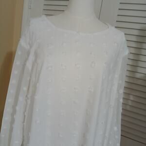 CHICSOUL.COM 3X White Lined 3/4 sleeve large polka dot sheer plus dress