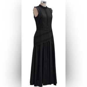 CHICWISH DIVE INTO ELEGANCE LACE PANELLED SLEEVELESS DRESS IN BLACK