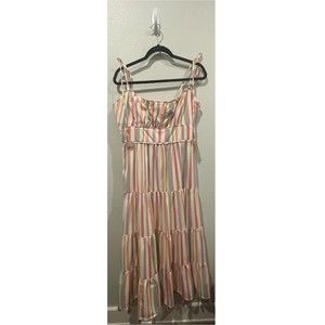 CHICWISH Rainbow Striped Multicolor Summer Maxi Dress. Size M