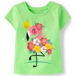 CHILDREN'S PLACE Lime Green Flamingo Floral Short Sleeve T-Shirt Girls Size 4T