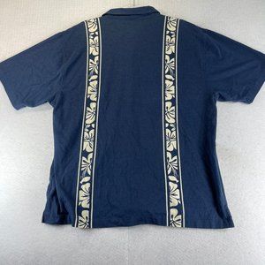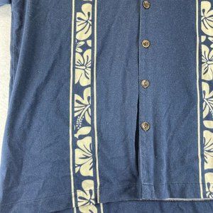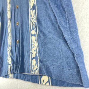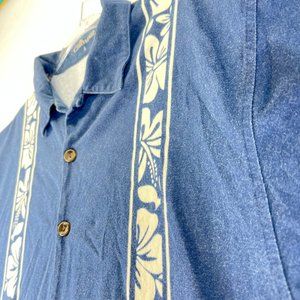 CHILIWEAR Mens L Blue Hawaiian Wood Button Up Short Sleeve Tropical Shirt