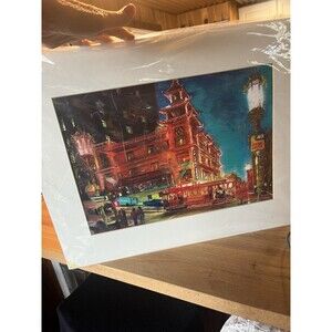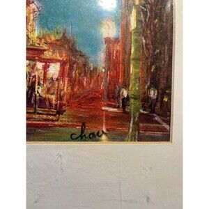 This vintage print oil painting captures the essence of Chinatown San Francisco at dusk, featuring intricate details of its architecture. The 16 x 20 print comes with a mat included, adding to its authenticity and elegance. Signed by the artist, this original work exudes a sense of nostalgia and charm, making it a timeless piece for any art lover looking to add a touch of vintage flair to their decor. Produced using oil painting techniques, this artwork transports viewers to the historic streets of San Francisco's Chinatown, creating a captivating visual experience.