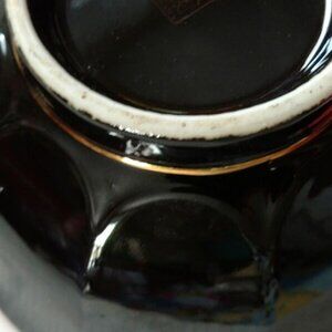 There is a lot of glare in pictures from the black glaze that the item is made of.