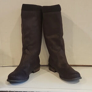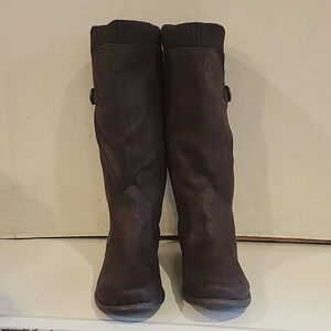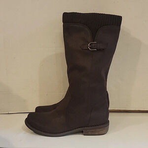 Chinese Laundry brown, faux suede boots. The boots 👢 measure 12" plus a 1" heel. The boots are in great condition. The boots are pull on and have a soft knit fabric at the top. Please see all pictures.