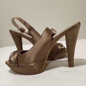 CHINESE LAUNDRY GOLD FABRIC PEEP TOE HIGH HEEL PLATFORM WOMEN SIZE 9.5