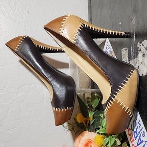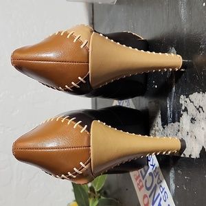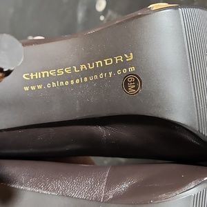 CHINESE LAUNDRY Leather Patchwork Thick Stich Detail Leather Heel 6.5M