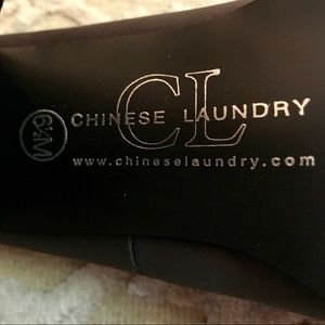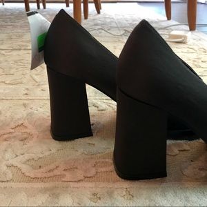 CHINESE LAUNDRY MAN MADE SATIN UPPER PUMP W ROUND TOE. SLIP-ON DESIGN. MAN MADE LINING AND INSOLE WRAPPED BLOCK HEEL. Purchased at outlet and never worn. They were not perfect but only had defects inside... bubbling that is hardly noticeable. OLIVE GREEN COLOR-very neutral.