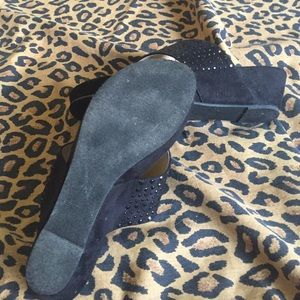 Platform wedge in black worn once. It has a suede upper with a man made outsole for lasting traction and wear. Sparkling!