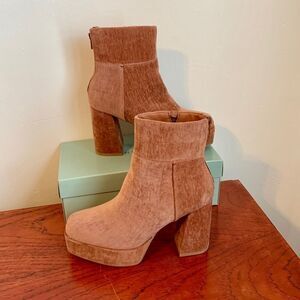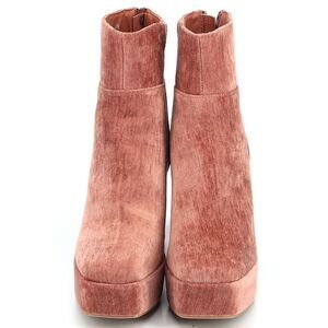 CHINESE LAUNDRY Pink Velvet Platform Booties Boots Chunky 7 VTG y2k Look Crushed