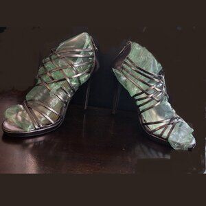 CHINESE LAUNDRY Z-Illene Silver Strappy Stiletto 4.5in Heels Back Zip Sz 9.5 M