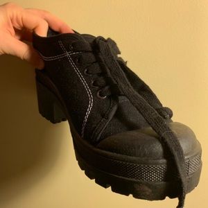 90s chunky heel shoe with contrast stitching by iconic brand Chinese laundry.