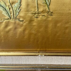 Expertly crafted and professionally framed, this is a rare find. The pink poppy represents loyalty and faith between lovers. Daisies are for hope, innocence and fun. Great wedding gift, anniversary or renewal of vows. Frame has some wear and silk has age spots