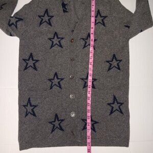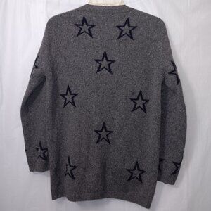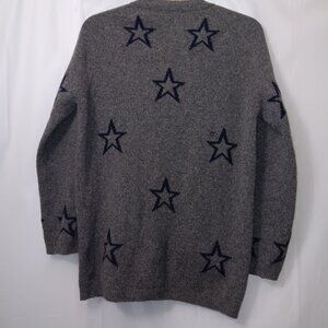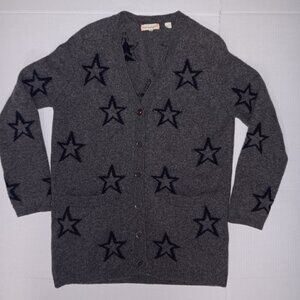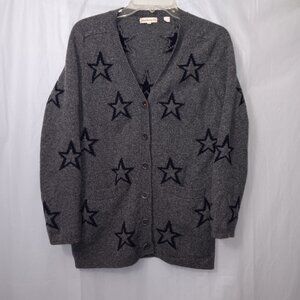 Size Medium Women's Chinti and Parker button down star print cardigan in the color gray with blue stars has functional pockets the material is 100% Lambswool in good pre-owned condition