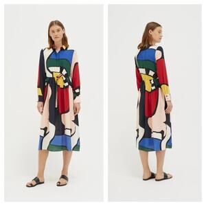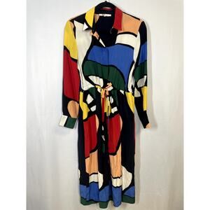 CHINTI & PARKER Multicolor Circus Silk Midi Shirt Dress Abstract Size 4 $585