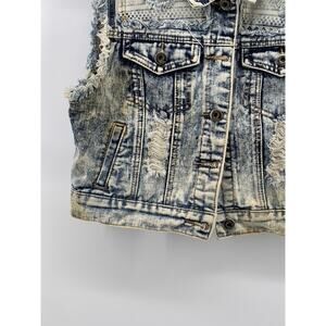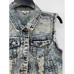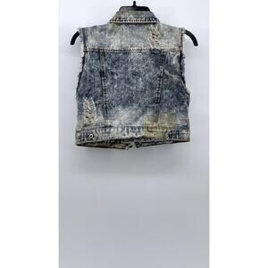 CHIQLE Women's Blue Denim Architect Distressed Button-Up Sleeveless Vest SZ L