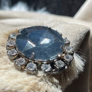 Beautiful, Elegant, Comfy and super Soft, Chit Chat faux suede and fur coat with huge rhinestone and smokey crystal hued jeweled buttons, 100% Polyester, RN#81893, machine wash cold, you have just purchased a garment of finest quality, fabric, and styling the best, most durable brand name, trims buttons, an extra button just in case you lose one.