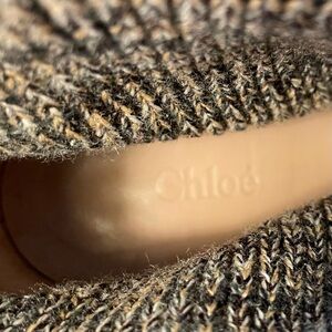 CHLOÉ Brown Leather Lace Up Ankle Platform Boot Knit Top Booties Size 39 US 8.5