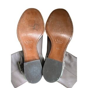 Chloé Leather Mid Calf Ankle Gold Buckle Riding Boots in Taupe. Size 36.5.