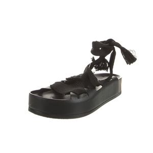 Black, Platform, Wrap-Around Straps & Lace-Up Closure at Uppers