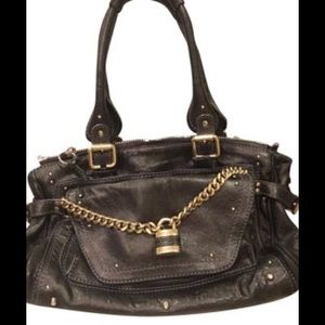 paddington capsule satchel with the signature stud & chain in good condition! Approx 8.5"H x 14.5"W x 7"D w/ 8" Drop Handles. w /Gold hardware & signature padlock has little trench need polish ,Also has a double top zip with leather Chloe tag pulls. The outside flap pocket has a hidden magnetic closure and