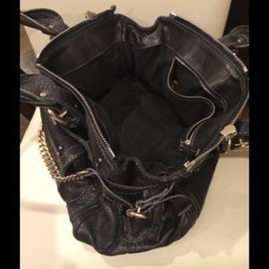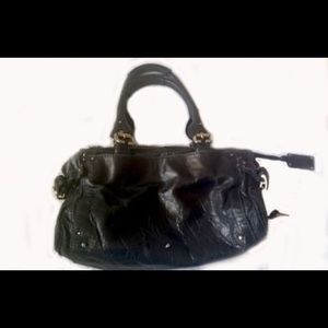 Chloe Black distressed leather w/both gold and silver tone hardware.spacious handbag with 3 extra pockets outside and 2 inside hardware adds little bit of weight Zip closure
