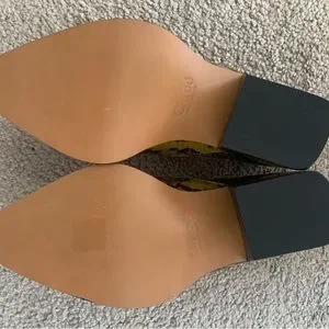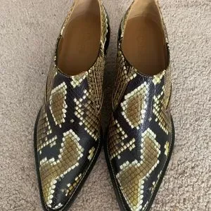Brand new in box, color is a snake print of black & mustard/olive. These fit as US size 6.5 to 7. Marked European 37.5 Make an offer!