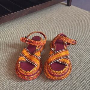 CHLOÉ Woven Platform Sandal size 38 multi-color.