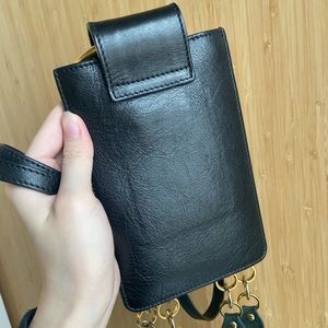While it’s a mini it’s super spacious Fits iphone cards cash lipstick and even sunglasses The strap is adjustable. Could also be wore as a bracelet bag. Super cute. The color is a dark green which is very close to black very easy to style. Limited edition