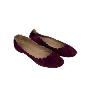 CHLOE 38.5 8.5M Ballet Flat Scalloped Burgundy Suede