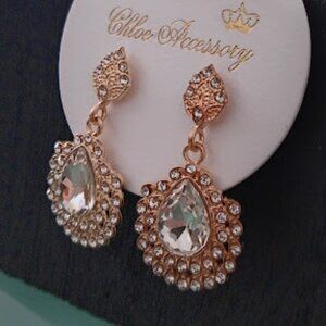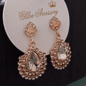 ONLY **1** PAIR LEFT!!! NEW!!! CHLOE ACCESSORY Glamorous Gold Clear Crystal Pear Shaped Drop Earrings**Beautiful Gold Earrings feature a Large Pear Shaped Clear Crystal that's surrounded by Small Round Clear Crystals! The Post is Pear Shaped and it's accented with Small Round Clear Crystals! Earrings will Compliment so many Looks! I have these Identical Earrings in Both Gold & Silver and in a Variety of Different Colors (**See Other Listings to View Them!**)!**Earrings are 1.65" Long/Post Backs**NEW ON HANG TAG!