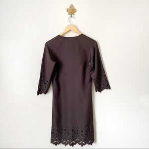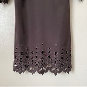 CHLOE Brown 100% Silk Eyelet Mini Dress Small