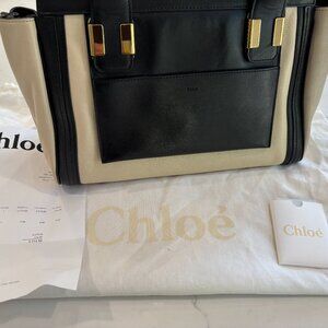 CHLOE Calfskin Medium Alice Satchel Husky White and Black