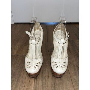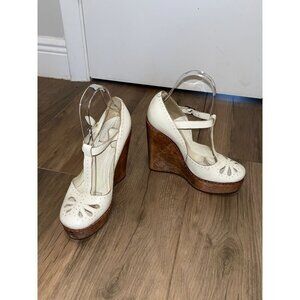 CHLOE Chloé ladies shoes platform wedge pumps leather wood cream Italy size 6