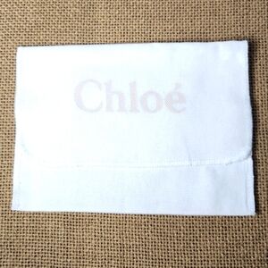 CHLOE Dust Bag extra small white with beige-ish/grayish foldover flap.