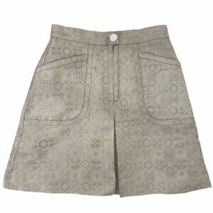 CHLOE Gold and Silver Jacquard Silk Blend Mod Mini Skirt Vintage Size US 6