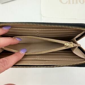 CHLOE Grained Calfskin Marcie Long Zip Around Wallet Textured Black Leather