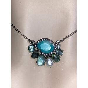 Set on a dark hematite-tone chain, this necklace combines cool-toned sparkle with artisanal detailing—perfect for adding drama and sophistication to any outfit.