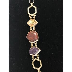 A bold fusion of modern geometry and rich jewel tones, this Geometric Multi-Stone Statement Necklace from Chloe + Isabel is a true wearable work of art. Featuring faceted stones in deep purples, earthy reds, smoky greens, and ocean blues, each gem is set within chic hexagonal frames for a striking, architectural feel.