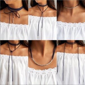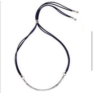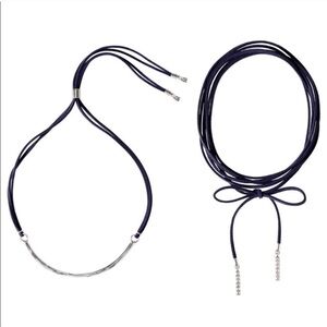 NIB Chloe + Isabel Hero Metal + Leather Necklace Set shiny rhodium plated & Navy Suede